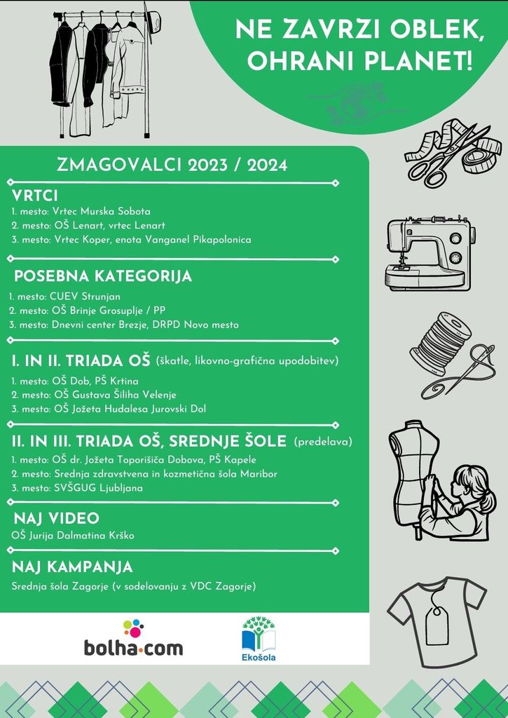Med letošnjimi nagrajenci Ekošole v njihovem projektu Ne zavrzi oblek, ohrani planet je tretje mesto v posebni kategoriji osvojil Dnevni center za romske otroke Brezje Društva za razvijanje prostovoljnega dela Novo mesto. Otroci so se z recikliranjem oblačil naučili, kako skrbneje ravnati z njimi, kako iz starih oblačil ustvariti nove uporabne izdelke in, predvsem, kako lahko vsakdo prispeva k ohranjanju narave.