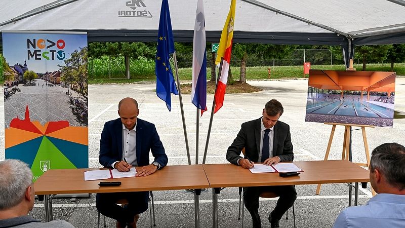 Župan Mestne občine Novo mesto Gregor Macedoni je v ponedeljek pred Olimpijskim centrom Novo mesto z Martinom Gosenco, predsednikom uprave izbranega izvajalca podjetja CGP d.d., podpisal pogodbo za gradnjo pokritega bazenskega kompleksa v Češči vasi. Severno od velodroma bo tako v okviru Olimpijskega centra Novo mesto začel nastajati bazenski kompleks s spremljevalnimi prostori, ki bo omogočal razvoj rekreativne in tekmovalne plavalne kulture v Mestni občini Novo mesto. Izvajalec bo z deli v vrednosti 5,6 milijona evrov pričel avgusta 2021, potekala bodo predvidoma do oktobra 2022.