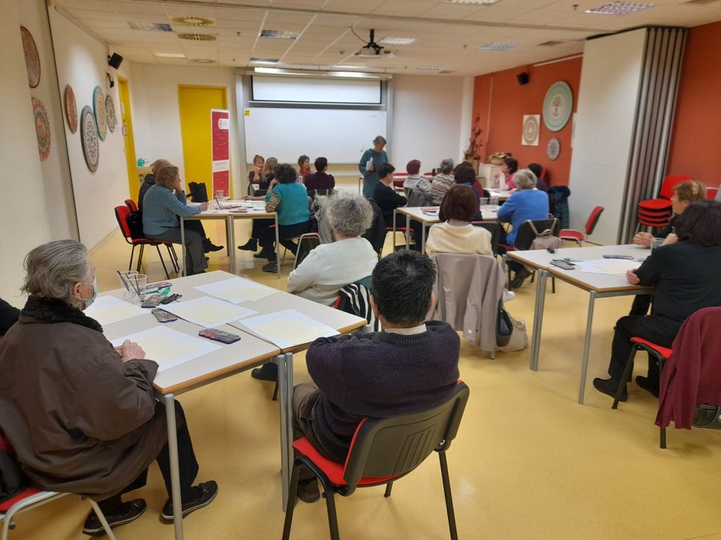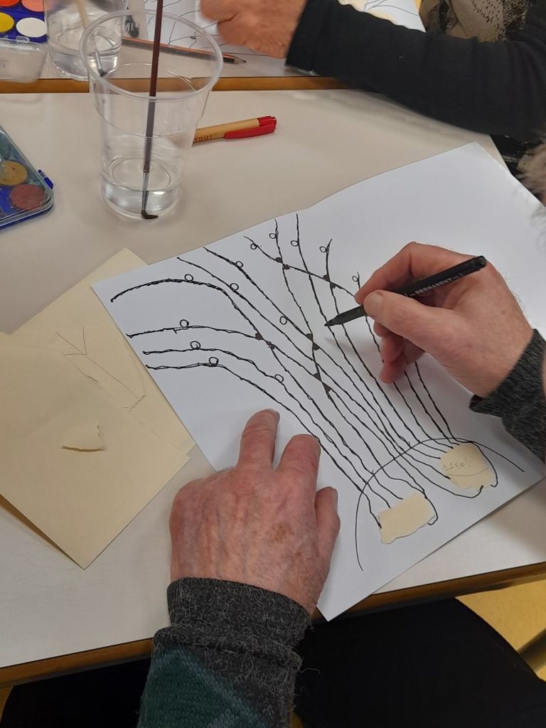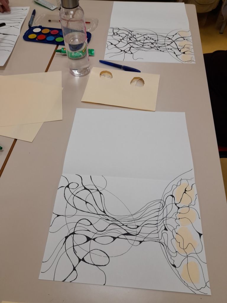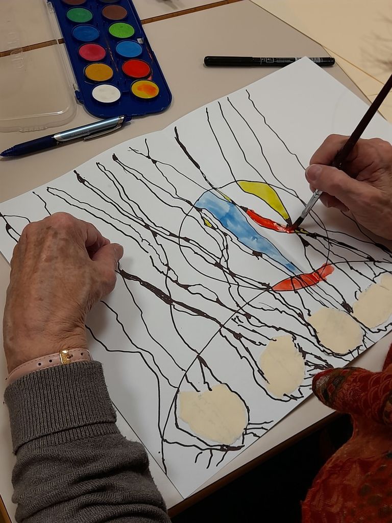 Kar dolgo smo čakali na to napovedano temo: Naj pride nova energija. Pedagoginja in svetovalka Tea Sulič je RIC-eva uslužbenka, ki je za nas bila nova predavateljica. Že začetek Četrtkovega srečanja je bil drugačen. Kar pet delovnih miz s stoli so dale vedeti, da danes ne bomo samo poslušali, ampak tudi ustvarjali. Na mizah nas je čakal papir, čopiči, vodene barvice, flumastri. To je bil za nas izziv, da s svojim ustvarjanjem poiščemo pot k sebi in iščemo, kaj si želimo in česa nočemo več. Najprej pa je bilo treba izklopiti vse moteče, da smo lahko s sabo. Dobro pripravljeni smo se predali navodilom in začeli z delom.