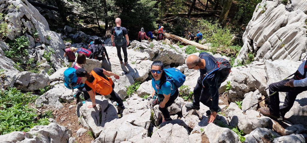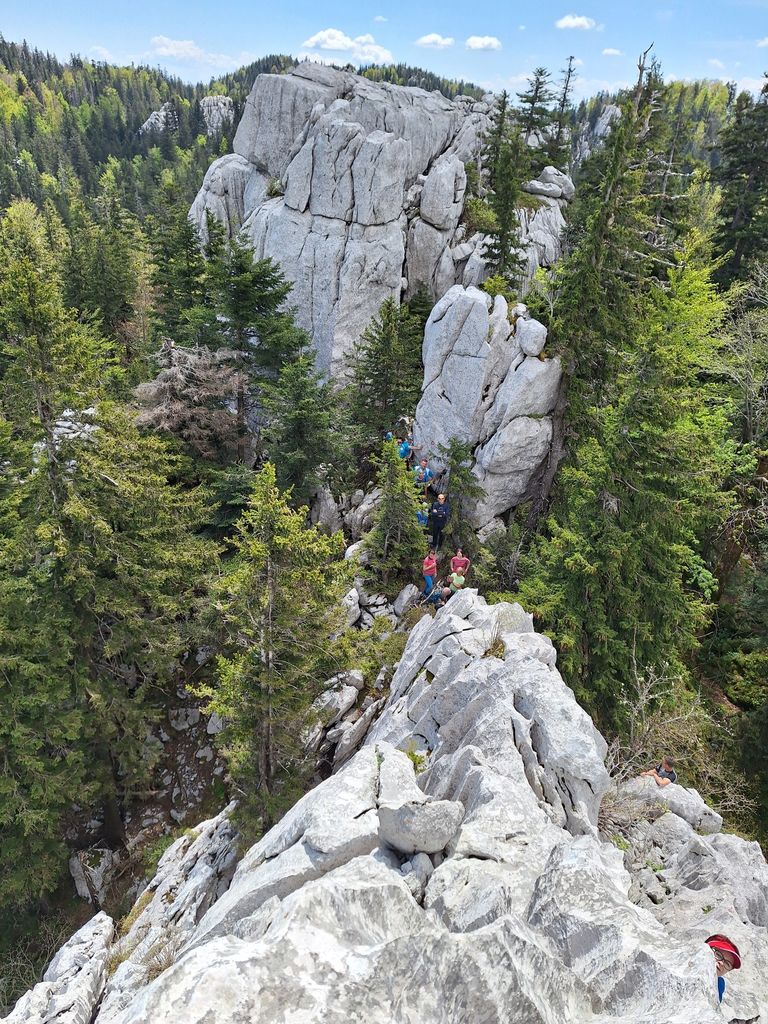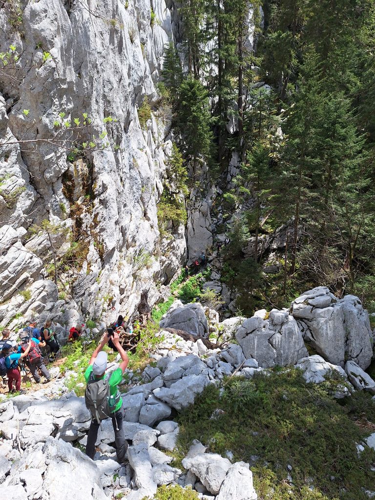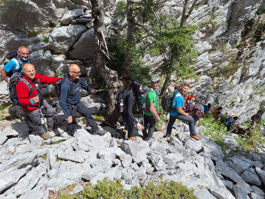 Področje po katerem je bila planirana današnja tura se imenuje Velika Kapela, kjer se skriva ena izmed najbolj osupljivih pokrajin na Hrvaškem. Tukaj se je narava v pravem smislu besede poigrala, in ustvarila neverjetne in fantastične oblike skal. Najprej smo se napotili na vrh Samarskih sten, ki je visok 1302 m, od tam smo imeli prečudovite razglede na Bjelolasico, Klek, Severni Velebit, otoke v Kvarnerskem zalivu in seveda Bele in Samarske stene. Tam smo srečali planince iz Hrvaške, ki so nam svetovali, kateri krog je najbolj slikovit in nam ga predlagali. Odločili smo se jih poslušati, in že smo se od vrha Samarskih sten odpravili čez Faraonovo dolino na Piramido. Pot do vrha je bila zabavna in precej adrenalinska. Pod vrhom smo se okrepčali s sendviči in pot nadaljevali do najbolj slikovitega dela naše poti – velikega kanjona. Pri kanjonu smo se razdelili v dve skupini, saj je pot zahtevna in ni bila primerna za vse. Ostali smo se podali na lažjo pot in si kanjon pogledali od zgoraj, tam pa počakali skupino, ki je šla skozi kanjon. Vmes nas je ujelo par kapljic dežja, ampak ni trajalo dolgo, dokler se ni spet pojavilo sonce. Od kanjona smo se podali naprej do Ratkovega skloništa, ki je taka zanimiva koča sredi ničesar, bi lahko rekli. Lesena brunarica je skrita v pol-jami, pod navpično skalo, ki jo prerašča kot naravna streha. Tam smo se ponovno okrepčali, imeli počitek, nato pa se od tam odpravili nazaj proti našim kombijem.
