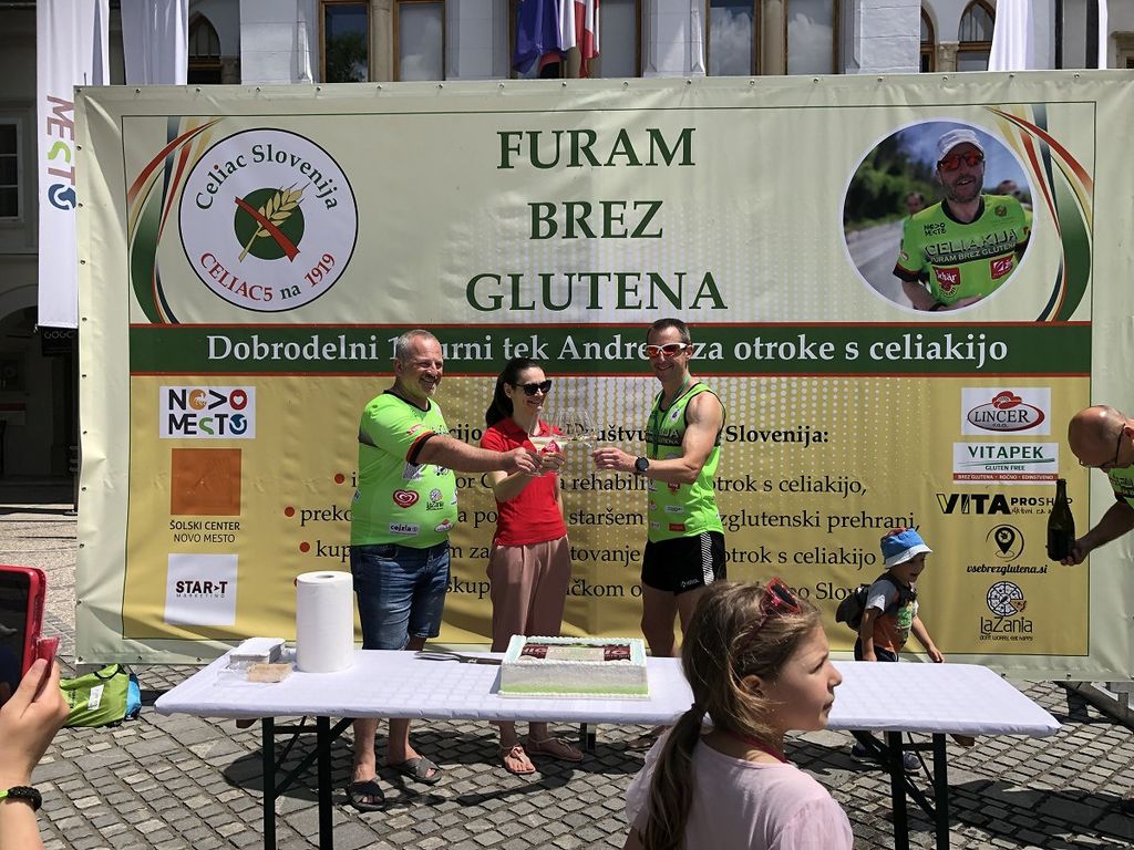Ob tej priložnosti so se v Društvu Celiac Slovenija odločili, da pripravijo prav posebno presenečenje za našega ambasadorja in srčnega ultramaratonca Andreja Zupana. Skupaj so nazdravili njegovemu zadnjemu dosežku - nazivu osebnosti meseca maja Televizije Vaš kanal.