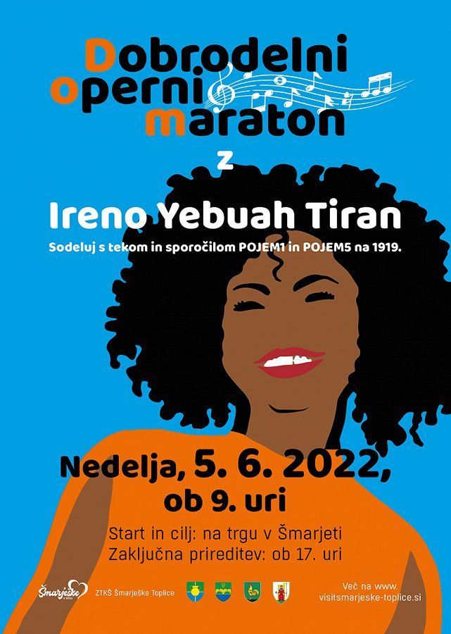 Ob svetovnem dnevu teka smo se na Mestni občini Novo mesto pridružili posebnemu dobrodelnemu dogodku, ko bo priznana mezzosopranistka in maratonka Ireno Yebuah Tiran odtekla in odpela Dobrodelni operni maraton. Dogodek, ki bo v nedeljo, 5. junija 2022, združil kulturo, šport in dobrodelnost, se bo začel in zaključil v Šmarjeti, postanki pa bodo tudi na Ratežu, Otočcu in Glavnem trgu.