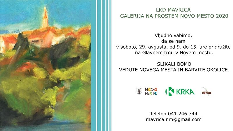 Likovno kulturno društvo Mavrica Novo mesto tudi letos prireja slikarsko kolonijo »Galerijo na prostem 2020 v Novem mestu«, ki je že 13-tič po vrsti.
