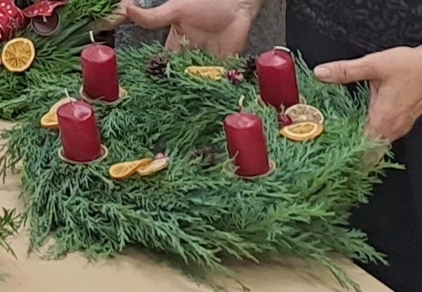 Konec tedna smo mize ali vrata okrasili z adventnimi venčki, saj je običaj, da se na prvo adventno nedeljo prižge prva sveča v venčku. Zato smo pretekli teden na OZ RKS Novo mesto ustvarjali adventne venčke in se podučili tudi o pomenu adventa.