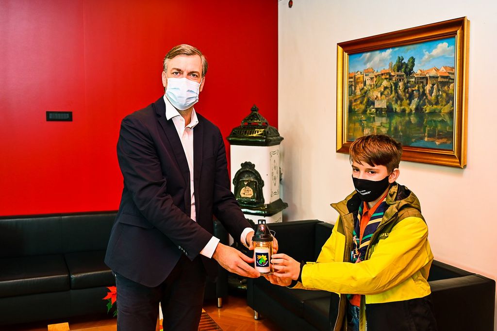 Župan Mestne občine Novo mesto Gregor Macedoni je danes sprejel Luč miru iz Betlehema in poslanico, ki sta ju na rotovž prinesla skavta iz novomeškega skavtskega stega Gorjanski medvedje. Luč miru, ki je iz Betlehema v Slovenijo in Novo mesto pripotovala prek Salzburga, sporoča, da sta v trenutnih časih ključni ljubezen in bližina ter da lahko vedno najdemo način, da se nekomu približamo, tako ali drugače, in mu izkažemo ljubezen.