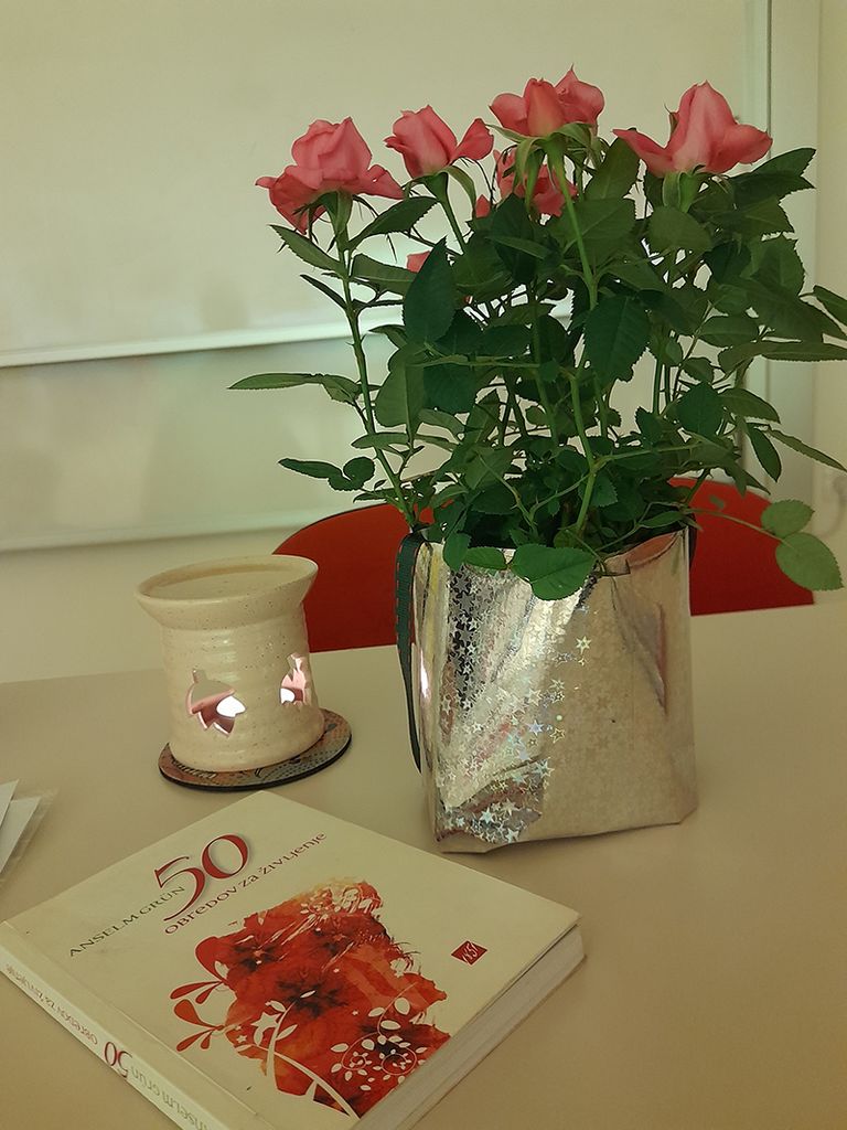 Današnje srečanje je padlo na Martinov dan, zato je bil pogovor o obredih pravi naslov. Obredi so v davnini ljudem pomenili veliko. Z njimi so se zahvaljevali za dobro letino, za  vreme, označevali so posebne dneve. Sploh so obredi vsebovali poseben ceremonial in so bogatili življenje naših prednikov. Veliko teh obredov so povzeli krščanski prazniki, saj so bili vezani na naravne prehode v nova obdobja. Z značilnimi jedmi in pijačo so zaznamovali tudi naša otroštva in take prenašamo naprej. V knjigah Roberta Fulghuma Od rojstva do smrti in Anselma Gruna 50 obredov za življenje so opisani obredi od rojstva do smrti in tudi za vsak dan posebej. Prav začetki dneva so važni, da z obredom označimo dan in se zvečer s hvaležnostjo poslovimo od njega.