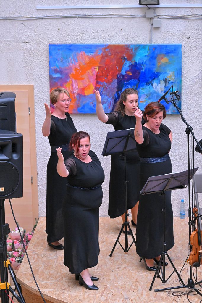 Koncert se je nadaljeval ob instrumentalni spremljavi odličnih novomeških glasbenikov Damjana Brcarja (klavir), Dušana Pavleniča (kitara), Dominika Pavleniča (tolkala) in Ivane Orač (violina), s sodelovanjem občinstva ter bivših pevk pa se je praznovanje tega pomembnega jubileja končalo v fantastičnem vzdušju - navdušenje obiskovalcev se je čutilo v zraku, kar pa je tudi največja motivacija za nadaljnje uspešno delovanje vokalne zasedbe.