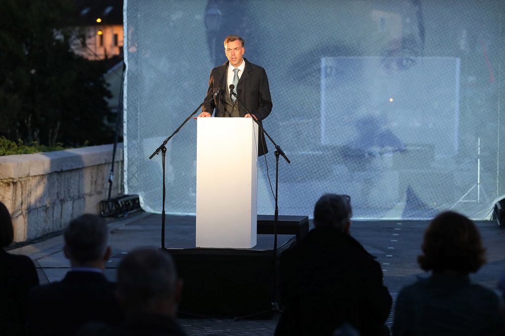 Župan Gregor Macedoni je v svojem govoru povedal, da je potrebno novomeško pomlad razumeti kot dvojni poseg: v stoletje in v svet; v čas in v prostor. Z bolečo izkušnjo največje dotedanje svetovne morije si je znala v domačem okolju ne le izboriti prostor pod svobodnim soncem, ampak izdolbsti tudi prostor umetniške svobode, svojevrstno osvobojeno ozemlje. Mladi uporniki so s celovitim umetniškim izrazom sredi okostenele stare družbene stvarnosti osvojili in osvobodili svoj izvirni teritorij, svojevrstno novomeško republiko.