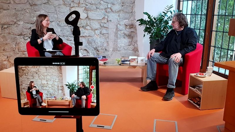 Tema tokratne bralne značke za odrasle je bila »Literatura in film«, zato ni presenečenje, da so na zaključni dogodek povabili pisatelja, dramatika, filmskega in gledališkega režiserja ter prejemnika številnih nagrad Vinka Möderndorferja. S povezovalko pogovora Alenko Murgelj iz novomeške knjižnice sta spregovorila o njegovem ustvarjanju tako na področju literature kot tudi filma, gledaliških in radijskih iger. S pisanjem pesmi je zaradi čustev, ki ga je v njem vzbudila prva ljubezen, začel že v gimnaziji. Kot sam pravi »vsak mlad človek piše pesmi« tudi če tega ne prizna. »Nekateri potem nadaljujemo. Že v osnovni šoli sem začutil moč, da lahko z besedami nekaj povem in da znam povedati nekoliko drugače kot moji sošolci. Predvsem pa sem veliko bral, v gimnaziji največ poezijo. Poznal sem vse, kar je izšlo. Ko sem odkril Kosovelove Integrale, se mi je odprl nov svet.«
