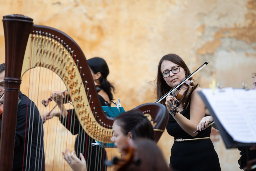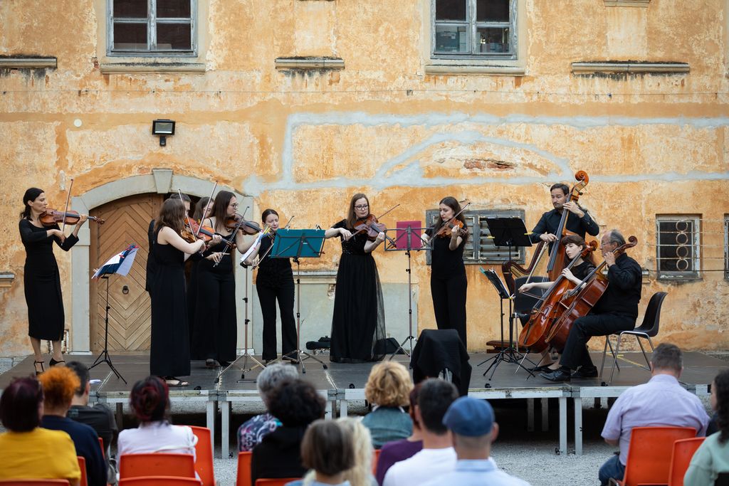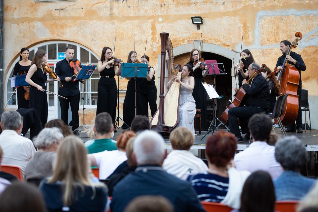 Program koncerta je bil premišljeno zasnovan in je ponudil pestro paleto glasbenih del. Eva Koprivšek Petkovšek je s svojim čudovitim glasom izvedla ariji Christopha Willibalda Glucka, "O del mio dolce ardor" iz opere "Helena in Paris" in "Che faro senza Euridice" iz opere "Orfej in Evridika", s čimer je navdušila vse prisotne. Sledil je nastop Lare Hrastnik Samec, ki je z eleganco in virtuoznostjo izvedla "Danse sacrée et danse profane" Clauda Debussyja, kar je občinstvo nagradilo z bučnim aplavzom. Sodobno delo Ane Mezgec "Brezno brez dna" pa je ponudilo introspektivno glasbeno izkušnjo. Godalna komorna skupina Stretto je izvedla Mozartovo "Divertimento v D duru K.136", katere trije stavki (Allegro, Andante in Presto) so zazveneli s popolno usklajenostjo in tehnično dovršenostjo.