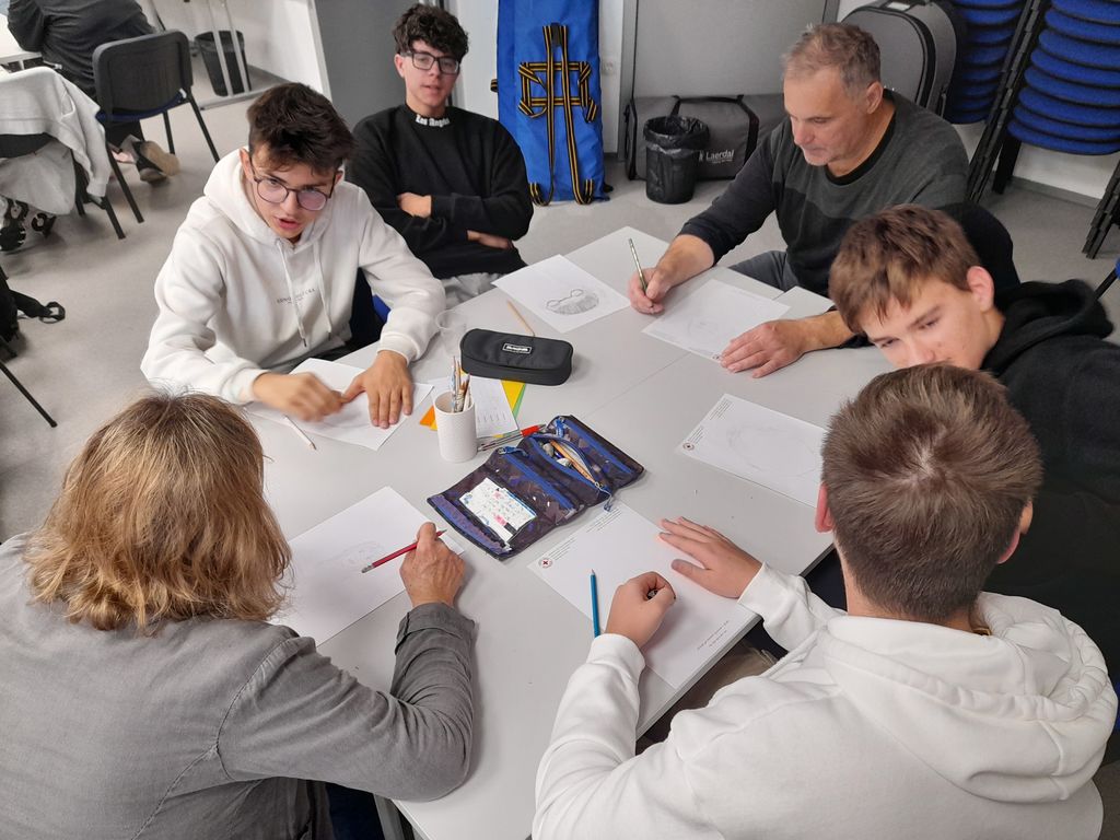 Drugi del našega druženja so pripravili dijaki sami. Izdelovali so origamije ter risali portrete s svinčnikom. Na koncu pa smo druženje poživili še s pantomimo.