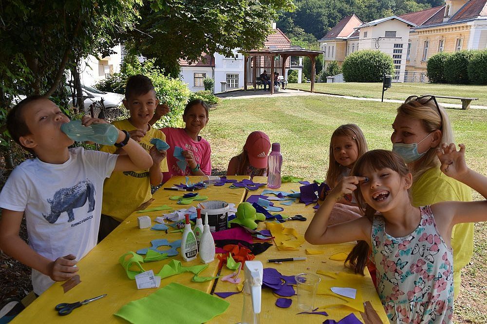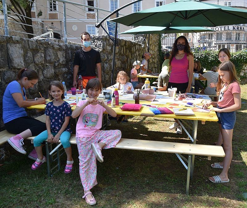V parku Rastoče knjige v Novem mestu se je odvil že tretji teden Otroškega sveta, meseca ustvarjalnih dni v organizaciji Društva za razvijanje prostovoljnega dela. Vsak dan so otroci ustvarjali različne izdelke in se bo tem pogovarjali o marsičem, tudi o svojih čustvih, se igrali z vrstniki in počitniški čas preživeli precej bolj zabavno kot doma pred tv zasloni ali tablicami.