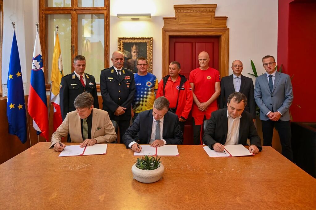 Minister za obrambo mag. Borut Sajovic, župan mag. Gregor Macedoni in predstavnik izbranega izvajalca BAX studia mag. Boris Bežan so danes, 16. julija 2025, na rotovžu podpisali pogodbo za izdelavo projektne dokumentacije za Regionalno središče za zaščito, reševanje in pomoč Novo mesto. V načrtovanem objektu ob Vojašnici Franca Uršiča v Bršljinu bo v kakovostnejših in celovitejših pogojih za izvajanje ukrepov zaščite in reševanja za primere nesreč delovalo deset ali več organizacij v okviru sistema zaščite, reševanja in pomoči. Projektiranje v vrednosti 720 tisoč evrov bo izvedeno v soinvestitorstvu mestne občine in obrambnega ministrstva, pri čemer bo občina prispevala 44 odstotkov sredstev, preostanek pa država.