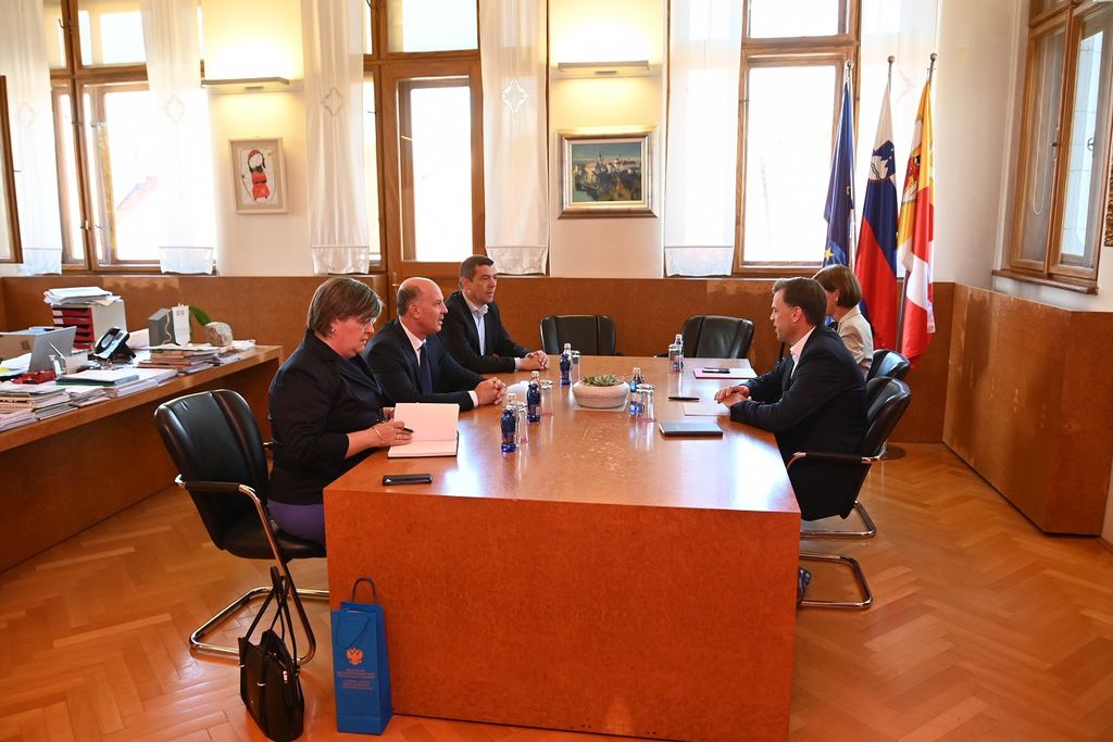 Župan Gregor Macedoni je danes na spoznavno srečanje sprejel novega veleposlanika Ruske federacije Nj. Eksc. Timurja Ejvazova, ki je svoj širši obisk Dolenjske začel na novomeškem rotovžu. Sogovornika sta se zavzela za nadaljevanje odličnih odnosov, ki potekajo med različnimi subjekti v Mestni občini Novo mesto in Ruski federaciji.