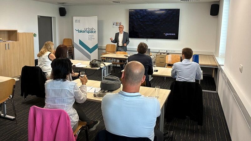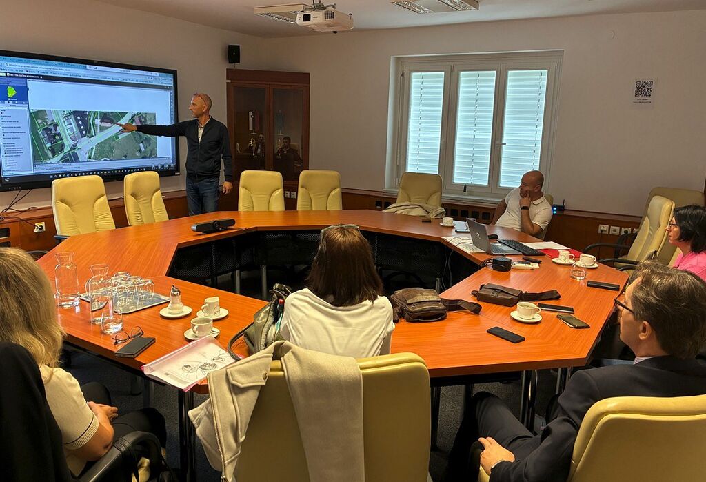Vodja Pisarne za razvoj na MONM Peter Geršič je predstavil razvojne strategije občine do leta 2030, digitalno strategijo in evropske usmeritve na področju digitalne preobrazbe. Skupaj z vodjo Službe za informatiko Miroslavom Strnišo sta gostom prikazala digitalne sisteme občine, pametno mestno platformo SITIUM, razvoj digitalnega dvojčka mesta ter uporabo IoT tehnologij. Aleš Kuretič je predstavil oblikovanje notranjih digitalnih sistemov in procese digitalnega prehoda, Mihael Udovč pa uporabo GIS sistemov pri prostorskem načrtovanju in digitalnem upravljanju prostora.