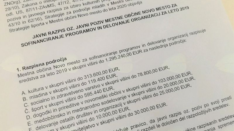 Namen poziva je spodbujanje delovanja organizacij, ki so pomemben dejavnik za ustvarjanje kakovostnega življenjskega okolja in jim na novomeški občini s sofinanciranjem omogočamo izvajanje družbeno koristnih vsebin. Prijavitelji vloge pošljejo na naslov Mestne občine Novo mesto v skladu z razpisnimi pravili, ki so poleg razpisa in vlog objavljeni na spletni strani Mestne občine Novo mesto. Prvi razpisni rok za pridobitev sredstev se zaključi 26. novembra 2018.