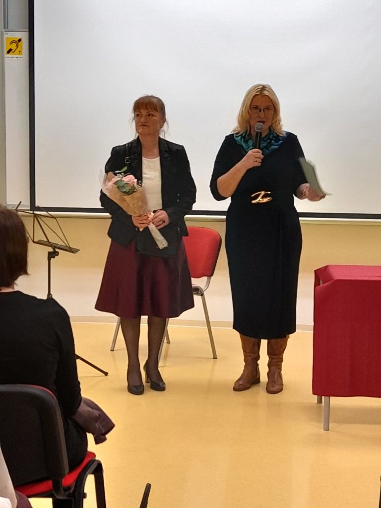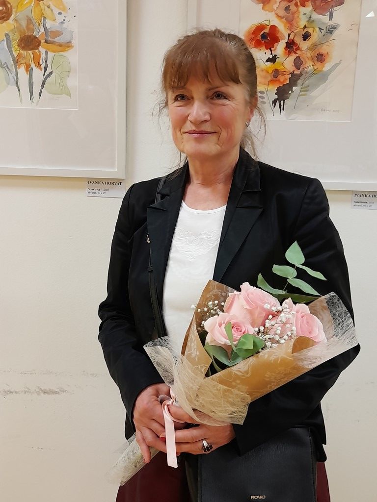 Predsednica društva Mavrica Alenka Zupan nas je pozdravila, se zahvalila glasbenikom in nam zaželela prijetno počutje ob tem lepem dogodku. Nato pa nam je predstavila slikarko Ivanko Horvat. Ona je v našo učilnico s svojimi slikami prinesla sonce in lepoto krajine. Cvetje, tihožitja in krajine je naslovila 19 slik. Veseli smo, da bomo kar dolgo v tako lepi družbi njenih slik. Najraje se izraža v tehniki pastela, akvarela in akril na platno. Po 41 letih službe v Termah Krka je v svoji Družinski vasi s pogledom na Gorjance našla nešteto motivov za svoje slikanje. Že sedem let ustvarja v LKD Mavrica Novo mesto. Razstavljala je v več ustanovah v Novem mestu in Straži in v Kulturnem domu Semič. V tujini pa v Budimpešti, pri zamejskih Slovencih in v Galeriji Karlovac.