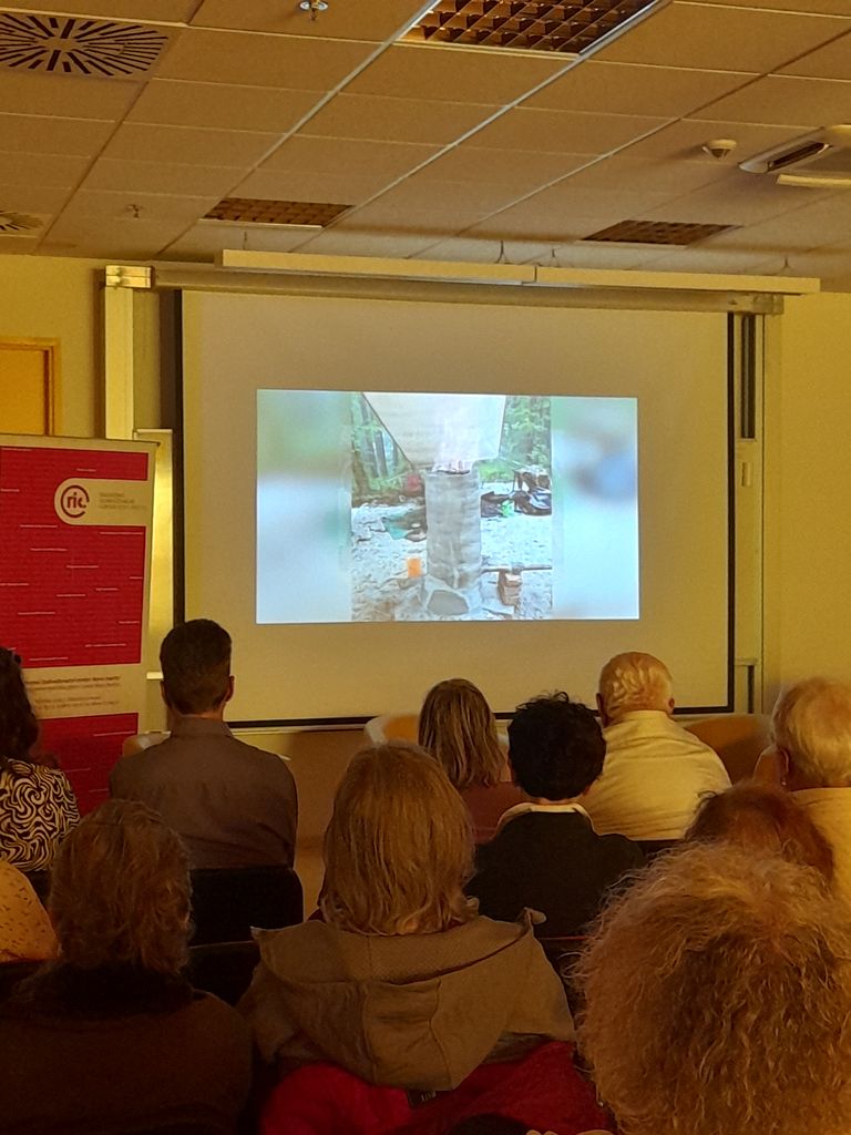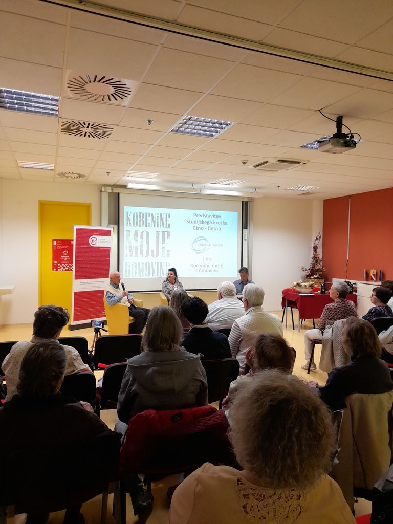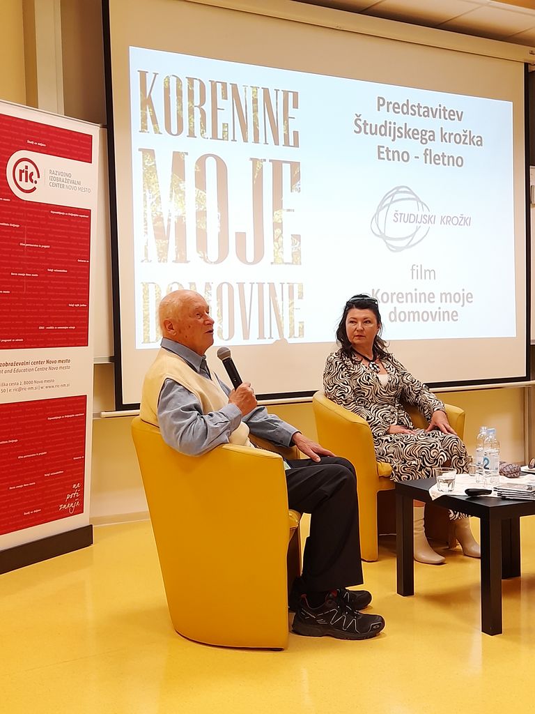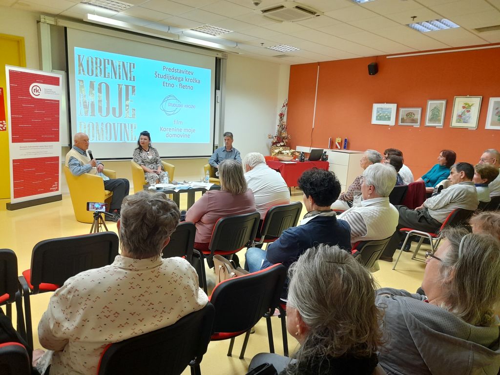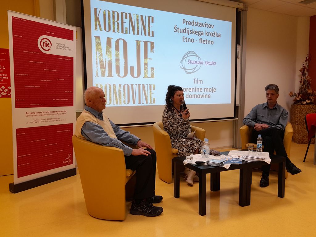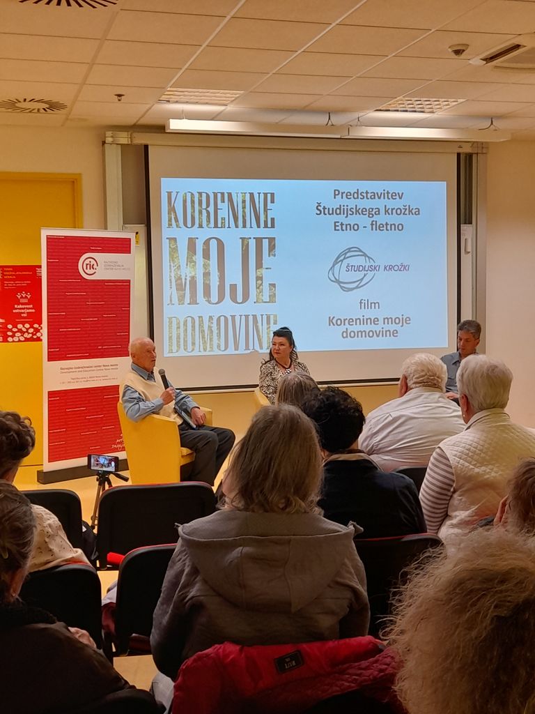 Kar 40 poslušalcev se je na Četrtkovem srečanju Univerze za starejše RIC Novo mesto odzvalo vabilu na zanimivo predstavitev dela Študijskega krožka Etno -fletno. Sam naslov je za našo generacijo bil zanimiv, saj so svoje delo pripravili in predstavili naši vrstniki. V študijskih krožkih so našli teme, ki jih zanimajo. Vsak je lahko raziskoval in pokazal, kaj vse se je naučil, spoznal in raziskal. To je dober izziv vsem študijskim krožkom, ki omogočajo, da vsak razvije svoje cilje iskanja. V teh krožkih so raziskovali vse dragotine, ki so ohranile slovenski rod, ga bogatile in dovolile, da je ta rod obstal in živi. Tako smo izvedeli več o imenu dežele, o najdbah, gradiščih in svetiščih in jeziku, kjer je skrita vsa zgodovina naroda. Še posebno nas odlikuje glasba, ko večglasnost ustvarja harmonijo. Slišali smo tudi o Gosposvetskem polju, kjer so ustoličili koseze, poštene kmete, in obljubah, da bodo poskrbeli za dobro dežele in ljudi. Proučevali so pestrost dežele, bogate z gozdovi in vodami, o hišah in cerkvah, stoječih na dobrih točkah, o znamenjih in kapelicah, ki ščitijo pred hudobnimi silami. Posebnost našega bajeslovja je v tem, da odkriva narodovo modrost, ko davni spomin povleče iz korenin. Tako kresniki in vesne, vedomci in babe, divjo možje in jage babe dobijo poln pomen naroda, ki se je ob bajkah napajal z modrostmi in tako preživel vsa neurja časa in obstal. Dokazali so iznajdljivost ljudi v gradnji kozolcev, o marljivosti čebel in medu in človeški povezanosti z naravo in skrbi zanjo, o panjskih končnicah, kjer je zarisana zgodovina naroda. Toliko zanimivih podatkov, ki so nas spomnili na naš obstoj, ki pa ni zagotovljen za večno. V odličnem filmu je gospa Branka Urbanija, ambasadorka učenja za leto 2018, o vsem tem povezala slike in besede. V film je povabila modrece našega časa Dušico Kunaver, Karla Gržana, IvanaSivca, ki vsak po svoje pričajo, da smo vredni obstoja in je zanj treba narediti še kaj, dokler je še čas. Sami s svojim delom opozarjajo na bogastvo ljudi, besed, običajev, obredov, ki pričajo, kdo smo in zakaj je to treba ozavestiti. To je učna ura domoljubja, ki zadene.