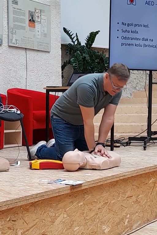Videli smo uporabo, gospod je bil zelo dober, nazoren. Poskusili smo oživljati lutko tudi mi, nastavili aplikacijo in slišali odziv z navodili defibrilatorja.