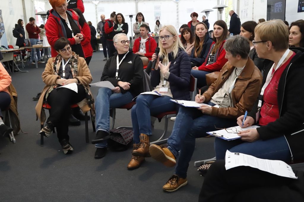 Strokovni delavci ZRSZ Novo mesto so v dopoldanskem času pripravili in vodili štiridelavnice, ki so bile dobro obiskane: delavnica Hitri zmenki, Predstavitev ukrepov/programov APZ, EURES seminar in delavnica Veščine iskanja zaposlitve.