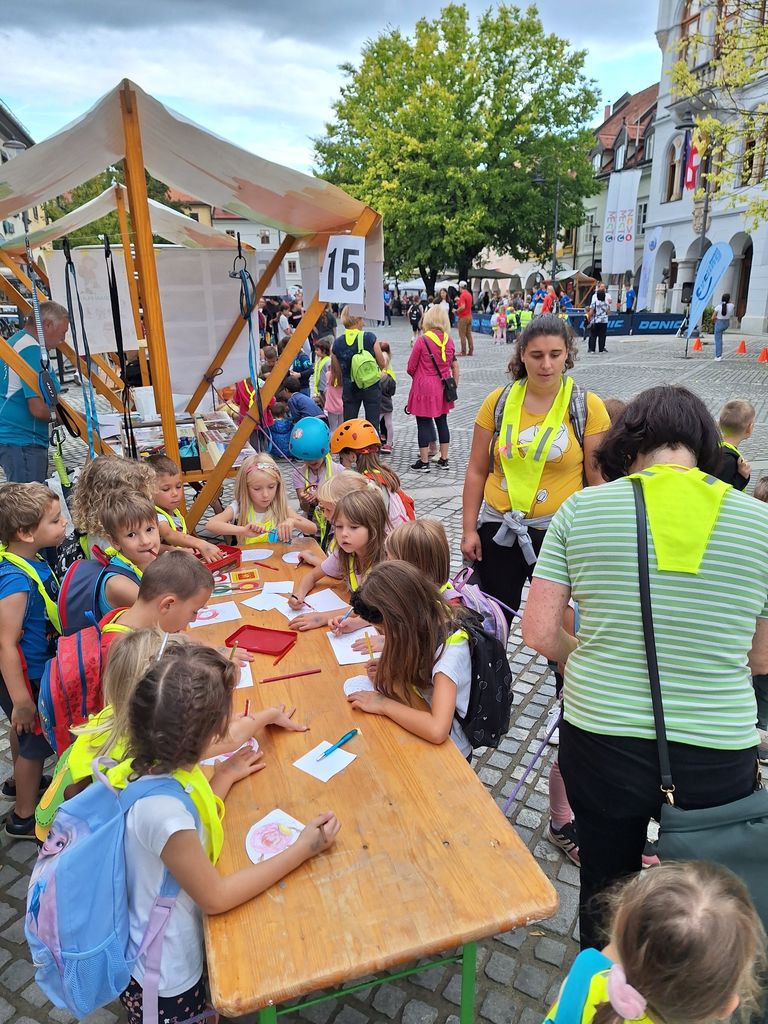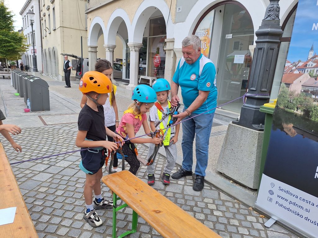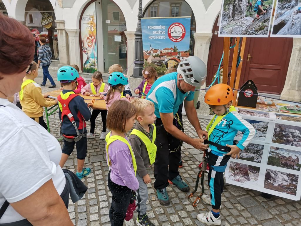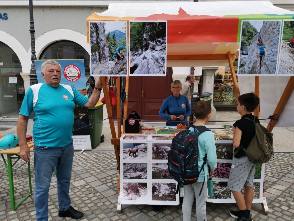 V petek, 22. 9. 2023, je bil osrednji dogodek na Glavnem trgu. Odlično organizirana prireditev s plesnim nastopom osnovnošolcev Novo mesto pleše, govorniki, glasbo. Po skupni prireditvi smo dogajanje prevzela društva, ki smo za obiskovalce iz šol in vrtcev pripravili zanimive dejavnosti. Ekipa Pohodniškega društva: Igor, Tine in Majda smo ob lepo urejeni stojnici z bogatim fotografskim gradivom predstavljali dejavnosti društva. Otroci so se preizkusili v uporabi samovarovalnega kompleta, barvanju markacij, takmovanju v zavezovanju planinskega čevlja in igrah. Povabili smo jih tudi na planinske izlete in k ogledu spletne strani društva, kjer dobijo potrebne informacije. Ko so obiskovalci zapustilni Glavni trg, smo se vsi izvajalci skupaj fotografirali, malo izmenjali pohvale o uspešno izvedeni prireditvi. Ob pospravljanju in odhajanju pa smo že nizali predloge za naslednje leto, ko bomo zopet sodelovali na dejavnostih Evropskega tedna Mobilnosti.