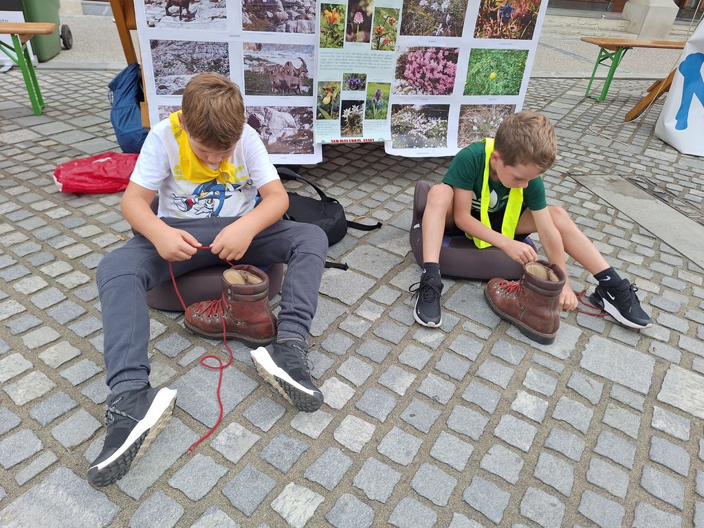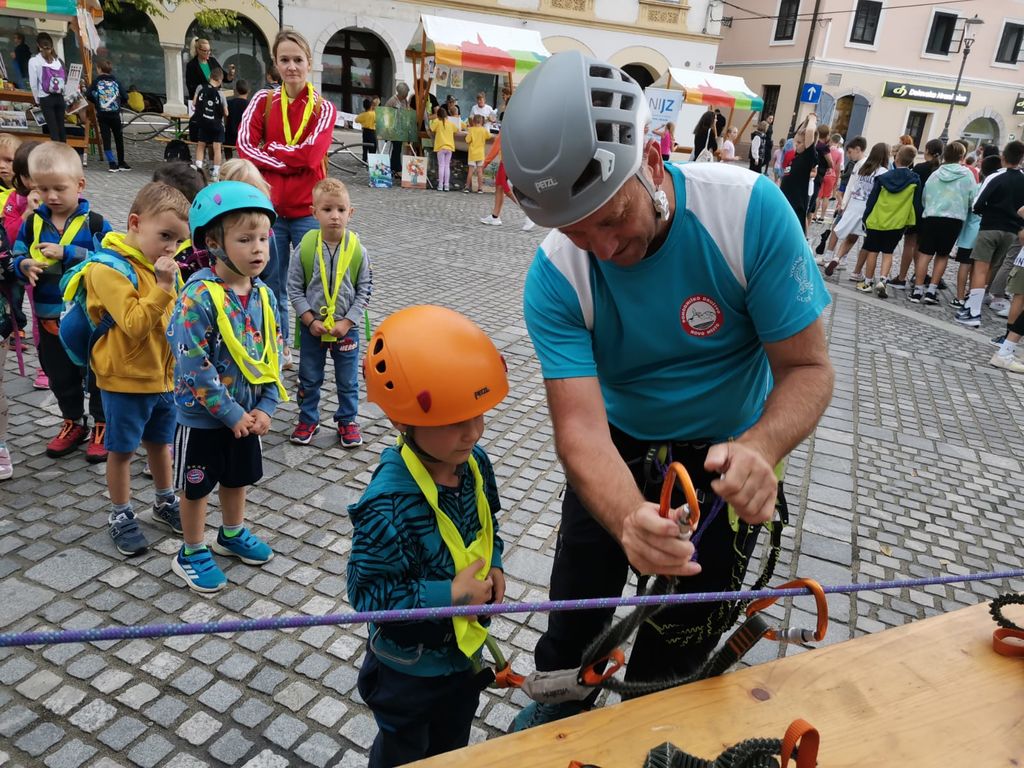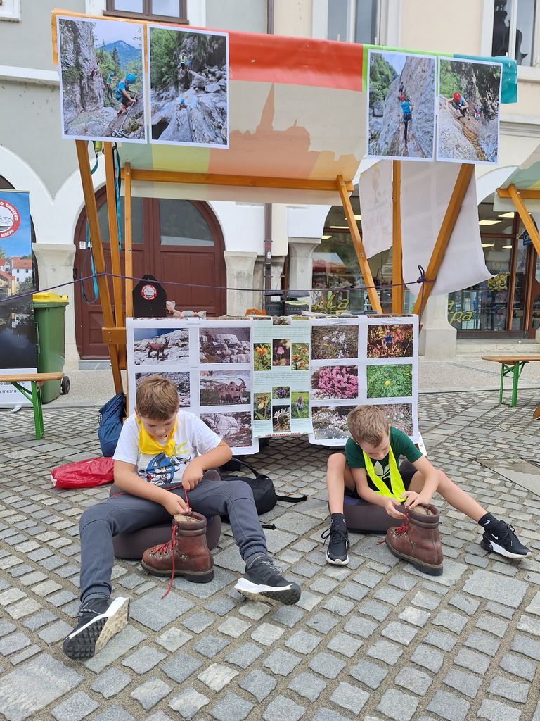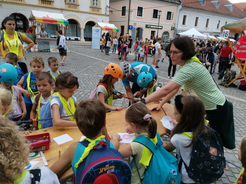 V petek, 22. 9. 2023, je bil osrednji dogodek na Glavnem trgu. Odlično organizirana prireditev s plesnim nastopom osnovnošolcev Novo mesto pleše, govorniki, glasbo. Po skupni prireditvi smo dogajanje prevzela društva, ki smo za obiskovalce iz šol in vrtcev pripravili zanimive dejavnosti. Ekipa Pohodniškega društva: Igor, Tine in Majda smo ob lepo urejeni stojnici z bogatim fotografskim gradivom predstavljali dejavnosti društva. Otroci so se preizkusili v uporabi samovarovalnega kompleta, barvanju markacij, takmovanju v zavezovanju planinskega čevlja in igrah. Povabili smo jih tudi na planinske izlete in k ogledu spletne strani društva, kjer dobijo potrebne informacije. Ko so obiskovalci zapustilni Glavni trg, smo se vsi izvajalci skupaj fotografirali, malo izmenjali pohvale o uspešno izvedeni prireditvi. Ob pospravljanju in odhajanju pa smo že nizali predloge za naslednje leto, ko bomo zopet sodelovali na dejavnostih Evropskega tedna Mobilnosti.