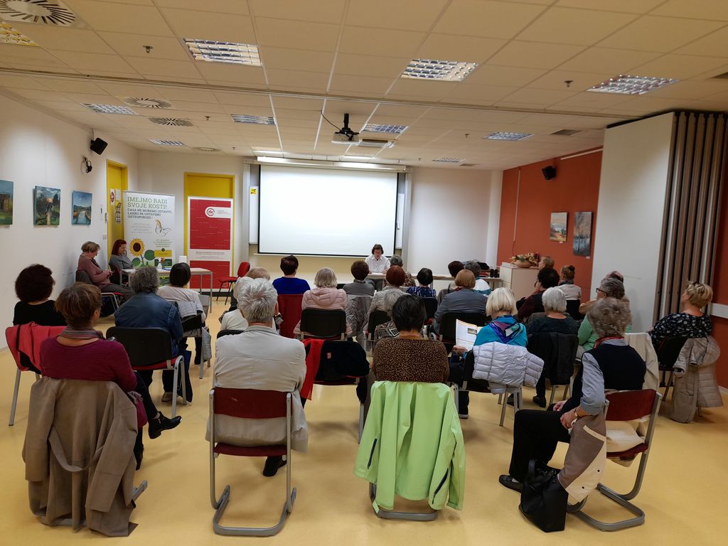 Zadnje oktobrsko Četrtkovo srečanje Univerze za starejše RIC Novo mesto smo preživeli s člani Društva za osteoporozo Novo mesto. O programih društva nam je spet spregovorila njegova predsednica Milojka Gutman. Kar 150 njihovih  članov se udeležuje predavanj, telovadbe in pohodov in tako poskrbijo za svoje zdravje in dobro počutje. Važno je, da o bolezni izvemo pravočasno in naredimo vse, da bodo naše kosti še dolgo brez poškodb. Tudi za nas so poskrbeli z brošuro Vse, kar moram vedeti o osteoporozi Tomaža Kocjana in z glasilom društva Sončnica. V njem je veliko podatkov o društvih, o članih. Največ pa o bolezni, ki nas ogroža v teh letih. Nato smo si lahko izmerili gostoto kosti z ultrazvokom petnice.
