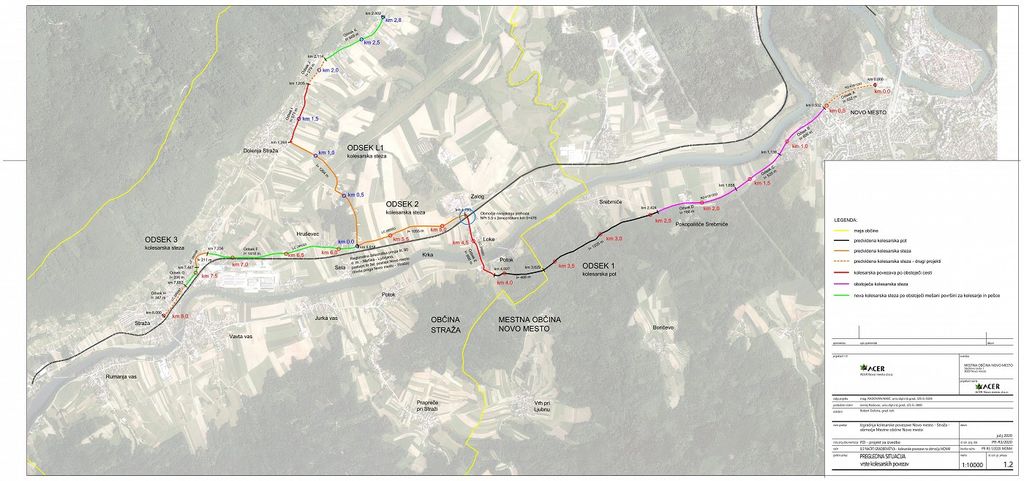 Zgrajenih bo 2,5 km kolesarskih površin v Mestni občini Novo mesto in 6 km kolesarskih površin v Občini Straža, kar skupno predstavlja 8,5 km novih kolesarskih povezav, ki se bodo navezale na že obstoječe ceste. Na obstoječih cestah se bo začrtalo 1,2 km kolesarskih povezav, s čimer bo nova zvezna kolesarska povezava med Novim mestom in Stražo v skupni dolžini merila 10,8 km. Potekala bo od križišča pri avtobusni postaji Novo mesto, ob regionalni cesti Straža-Novo mesto (Topliška cesta), mimo pokopališča Srebrniče do Volavč po gozdni poti in nato naprej na relaciji Volavče-Loke-Hruševec. Nadaljevala se bo ob trasi lokalne ceste Zalog-Straža, zaključila pa se bo v centru Straže pri priključku Ulice Pod Srobotnikom. Dodatno se bo uredila tudi nova kolesarska steza ob javni poti v smeri Dolenje Straže.