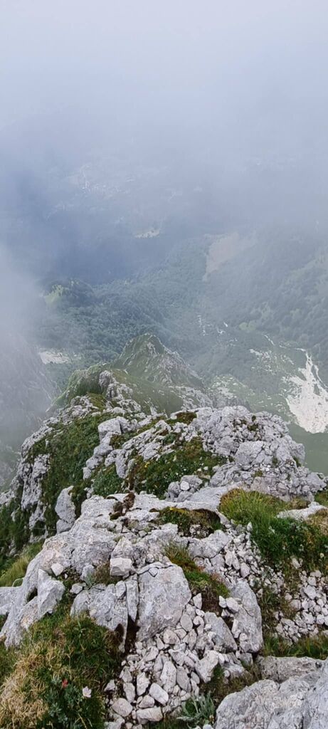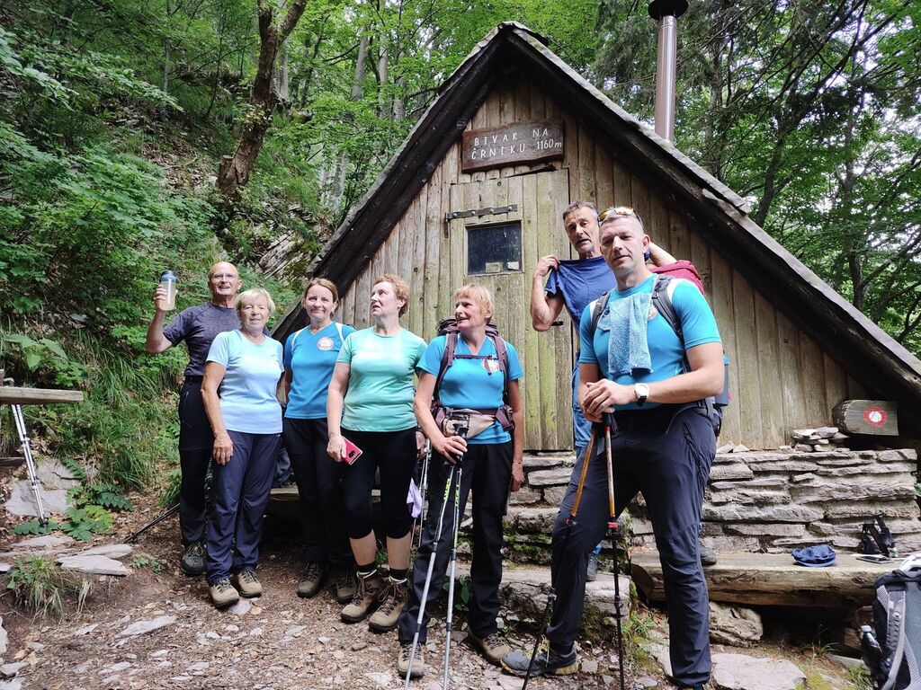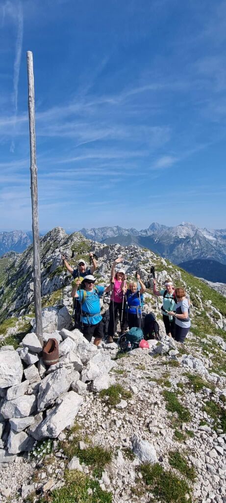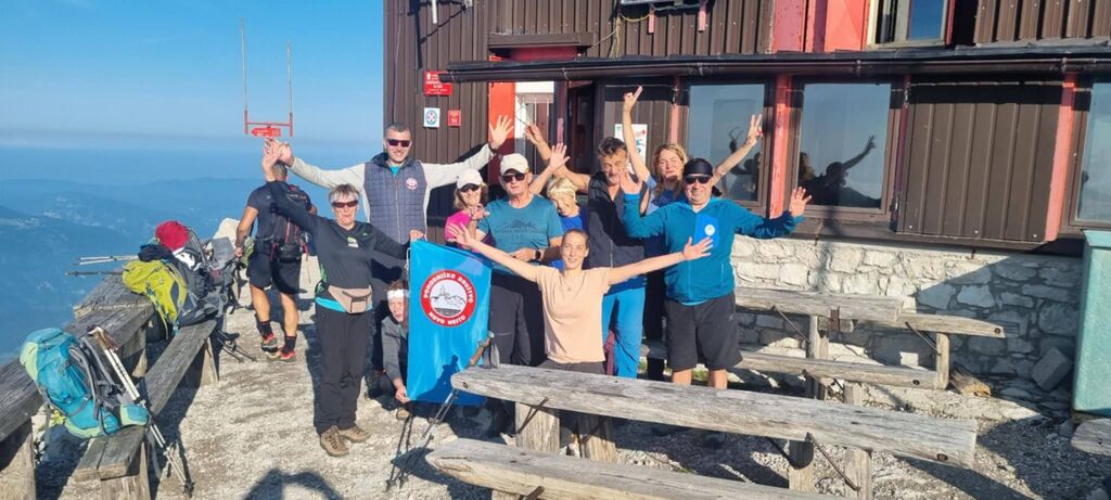 Če so se nam vso pot odpirali čudoviti razgledi na vse strani, pa sta nas na vrhu pričakala megla in veter, kar pa nam ni zmanjšalo navdušenja in veselja na vrhu. V Gomiščkovem zavetišču so nas sprejeli prijazni oskrbniki iz PD Nova Gorica, Maja in Jerica pa sta poskrbeli, da nismo bili lačni in žejni. Sledil je lep družaben večer naše planinske družine in spanje.