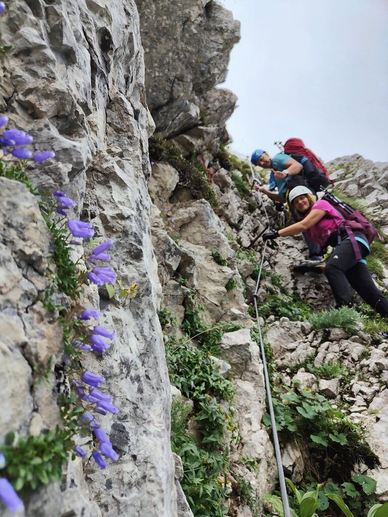 Zbudili smo se v prekrasno sončno jutro in se po zajtrku najprej vzpeli po znamenitih kamnitih stopnicah na Batognico (2.164 m), katere vrh je prepreden z rovi, bunkerji in raznimi ostanki soške fronte in spomini iz 1. svetovne vojne. Po sestopu smo se usmerili proti Srednjemu vrhu, z 2.134 metri in razgledom na Krnsko jezero, nadaljevali po grebenu, polnem cvetja, proti Krničici (2.142 m). Z vrha smo se nato spustili po vojaški mulatjeri, ki vodi tudi čez krajši predor. Po dolgih ključih smo se po travnatem pobočju spustili do planine Zaprikraj, kjer smo se osvežili s pijačo in nabavili odličen tolminski sir za domov. Do izhodišča v Drežnici smo se zapeljali in se za zaključek še osvežili v prijetno hladnem tolmunu slapa Krampež v Drežnici.