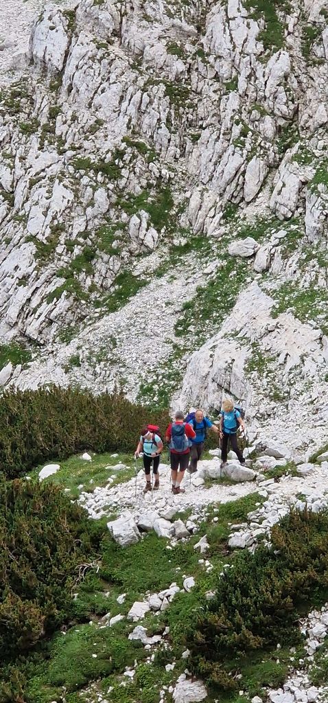 Prvi dan smo se odpravili na Visoko Vrbanovo špico, naše izhodišče je bilo v dolini Kot. Devetnajst pohodnikov se nas je zbralo na tokratni turi in kaj hitro smo jo iz parkirišča ubrali proti sedlu, ki se nahaja med Rjavino in Vrbanov špico. Sprva lahka pot se kmalu prične vzpenjati in prve znojne kaplje so tu. Pot nas pripelje do manjšega studenčka, ki nam ponudi hladno vodo. Krajši počitek izkoristimo, da si natočimo dodatne zaloge vode, ki nam bodo v nadaljevanju še kako prav prišle. Pot nadaljujemo do Debelega kamna. Malo višje pa se pot odcepi in petnajst pohodnikov se odloči za zelo zahtevno pot na Vrbanove špice. Štirje pohodniki nadaljujejo v smeri Doma Valentina Staniča. Pred vstopom v steno si namestimo čelado in samovarovalni komplet. Pot poimenovana po Lojzetu Rekarju nam ponuja veliko adrenalina. Na poti, ki je delno zavarovana z klini, jeklenicami in se strmo vzpenja, pa zopet spušča, so pobočja delno poraščena s travo in ruševjem. Najprej dosežemo 2299 m visok vrh Spodnje Vrbanove špice, v nadaljevanju 2244 m Plesišče, kjer smo tudi zaplesali. Vseskozi se nam ponujajo lepi razgledi, le naš očak je bil zavit v megli. Končno dosežemo tudi željeni vrh Visoka Vrbanova špica 2408 m. Krajši postanek, obvezno slikanje in že se spustimo do Doma Valentina Staniča, kjer smo tudi prenočili. Da pa bo mera polna, smo si za poslastico izbrali še bližnji Begunjski vrh, 2461 m visok vrh. Sledilo je druženje in večerni počitek. Rodilo se je novo jutro in po zajtrku nadaljujemo z našim programom. Tokrat je na vrsti 2532 m visoka Rjavina. Tudi tokrat se razdelimo v dve skupini in se odpravimo novim dogodivščinam naproti. Rjavina je mogočna gora, ki zahteva izkušenega gornika z vso potrebno opremo. Grebenska pot je potekala brez posebnosti, udeleženci motivirani, mimo dveh naravnih oken vse do vrha. Daljši postanek za okrepčilo in slikanje, na kar se odpravimo proti našemu izhodišču v dolini Kot, ki nam je z vrha tako lepo viden. A do tam nas čaka še nekaj zelo zahtevne poti. Spust opravimo po plezalni poti, ki nam ne predstavlja večjih težav. Zadovoljni z opravljenim smo se odpravili še do okrepčevalnice Aljažev hram kjer smo si privoščili zasluženo pijačo in obenem naredili analizo dvodnevnega dogodka. S strani vodnikov Tine, Božo vse pohvale udeležencem za opravljene vzpone.