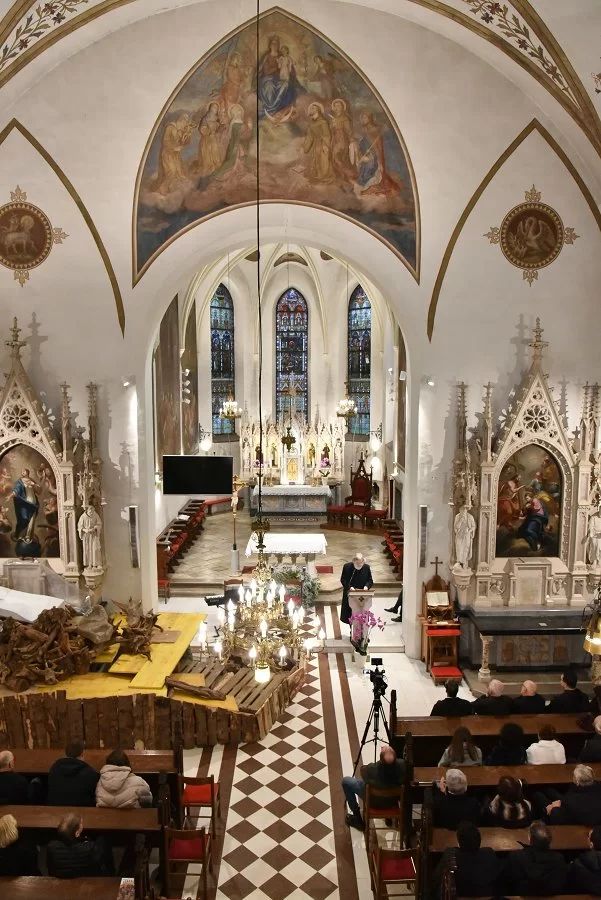 Na koncu skoraj pol drugo uro trajajočega programa v cerkvi je sledil blagoslov kipa Frančiškan z rastočo knjigo, ki stoji na lepo urejeni zelenici med cerkvijo in frančiškanskim samostanom. Obred blagoslovitve bronaste skulpture Frančiškan z rastočo knjigo je v spremstvu patrov sobratov in gostov blagoslovil ljubljanski nadškof in metropolit Stanislav Zore.
