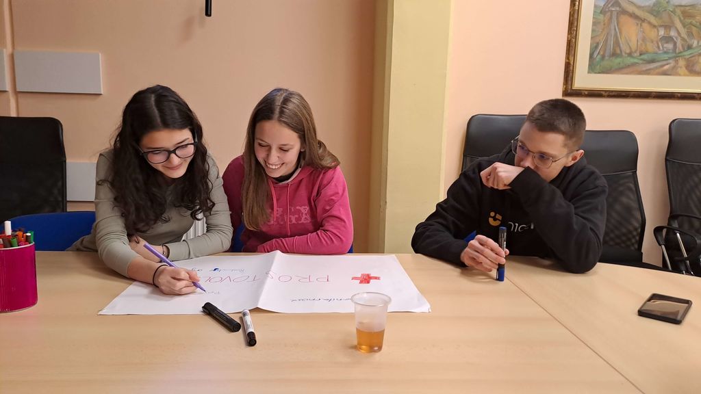 Obiskali so še eno gospo na Drski, ki je darovala oblačila in posteljnino. Vse to so mladi prostovoljci odnesli v skladišče in zložili na police, da bo na voljo za socialno ogrožene uporabnike. Po malici so si ogledali film o možnostih sodelovanja mladih v prostovoljskih dejavnostih na RK Novo mesto ter izdelali plakate o prostovoljstvu.