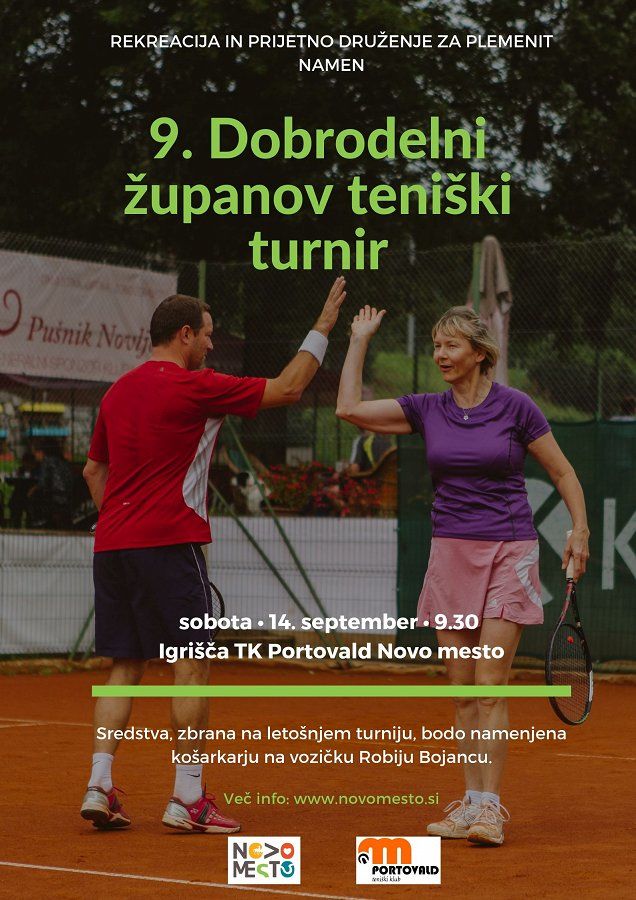 V Kabinetu župana znova pripravljamo Dobrodelni županov teniški turnir, ki bo letos v soboto, 14. septembra 2019, na igriščih Teniškega kluba Portovald. Sredstva, zbrana na letošnji izvedbi turnirja, bodo namenjena našemu občanu Robiju Bojancu.