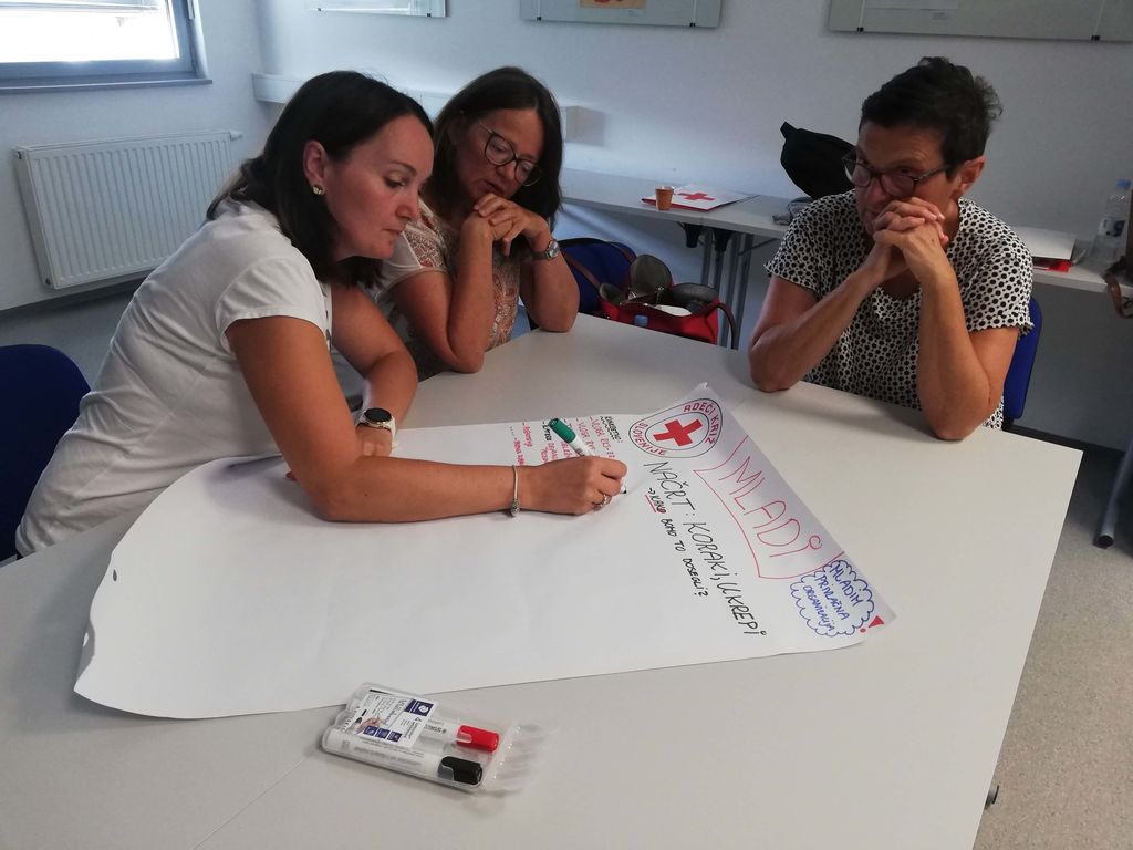 Na srečanju smo se med seboj preko različnih animacijskih iger spoznavali, nato smo poslušali predavanje o mednarodnih smernicah RKS in dobili nekaj idej/praks/gradiva za izvedbo dejavnosti na naših območnih združenjih. V okviru OZ RKS Novo mesto pa smo predstavili primer dobre prakse dela z mladimi, oblikami prostovoljskega dela za mlade, načini pridobivanja mladih in sodelovanja z šolami ter govorili o pomembnosti delavnic ter Ekip prvih pomoči za otroke v šolah.