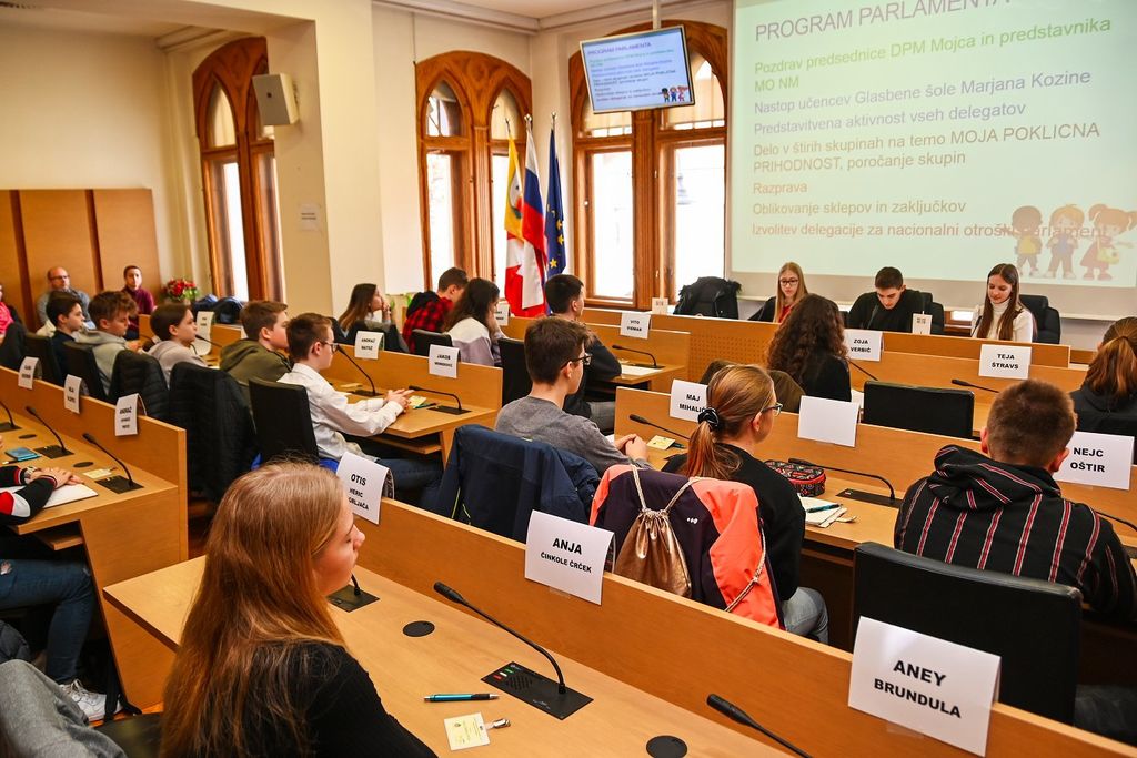 Včeraj so rotovž zasedli parlamentarci jugovzhodne regije, ki so bili izbrani na občinskih otroških parlamentih. Na regijskem srečanju so se med sabo spoznavali v komunikacijskih delavnicah, delali v štirih skupinah in razpravljali na temo poklicne prihodnosti.