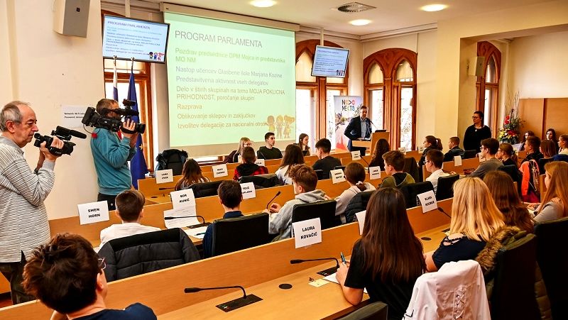 Mlade parlamentarce je pozdravil župan Gregor Macedoni, zasedanje pa so popestrili učenci Glasbene šole Marjana Kozine.