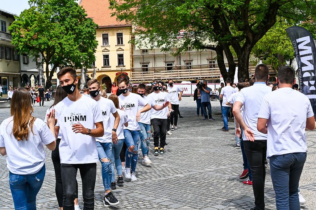 Natanko ob 12.00 so bodoči maturantje pred rotovžem zaplesali maturantsko četvorko, letos edino v Sloveniji. Udeležence je pred pričetkom pozdravil tudi župan Gregor Macedoni in jim zaželel srečno ob tako pomembni prelomnici.