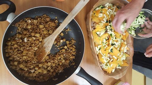 Pripravljali in pogostili smo se s kruhki z muškatno bučo, bučno enolončnico s šitakami, sladko juho iz bučk in jabolk, narastkom z bučo in seitanom ter kabocho.