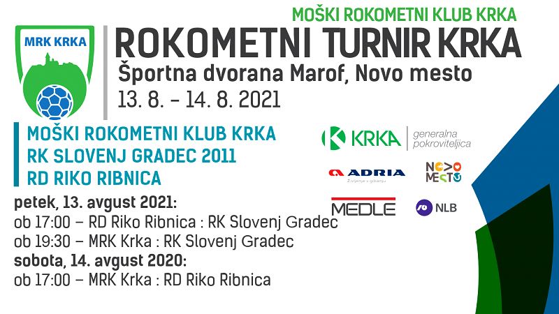 Rokometaši MRK KRKA bodo po dveh tednih priprav tudi letos organizirali tradicionalni rokometni turnir KRKA 2021, ki bo v petek, 13. avgusta, in v soboto, 14. avgusta 2021, potekal v dvorani Marof v Novem mestu. Tokrat zaradi razmer s koronavirusom v Novem mestu ne bo tujih zvenečih ekip, bodo pa za rokometni praznik poskrbele domače ekipe.