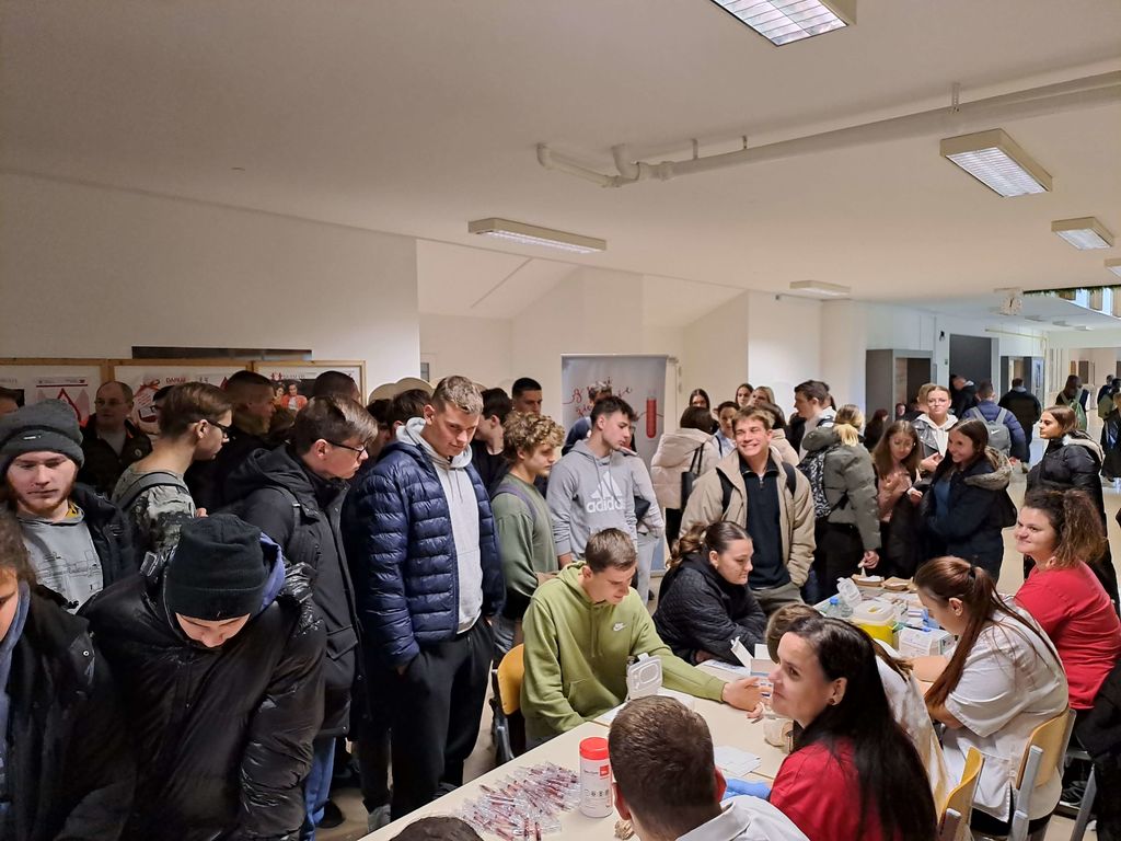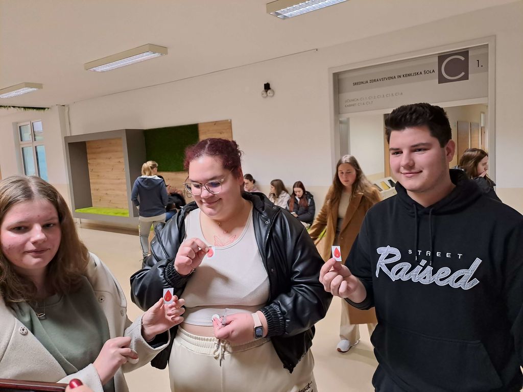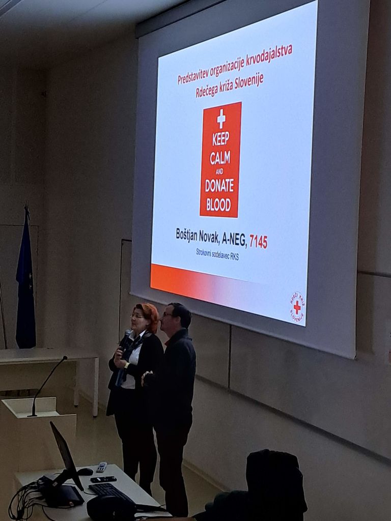 Ker pa vemo, da na mladih svet stoji tudi na področju krvodajalstva, smo petkov dopoldan preživeli na Šolskem centru Novo mesto, kjer nam vsako leto ob Dnevu prostovoljstva odstopijo prostore, v katerih vsem dijakom zaključnih letnikov njihovih šol predstavimo krvodajalstvo kot eno izmed oblik prostovoljstva in pomoči drugim. Tokrat je predavanju Boštjana Novaka iz RKS prisluhnilo okrog 600 dijakov, ki so se nato ustavili še na naši predstavitveni stojnici, kjer so lahko izpolnili kratek kviz, s katerim so pokazali, koliko so dejansko izvedeli iz predavanja. Tisti, ki so želeli, so lahko na stojnici pri zaposlenih na Centru za transfuzijsko dejavnost Novo mesto izvedeli svojo krvno skupino in teh dijakov je bila kar večina, ampak s pomočjo dijakov zdravstvene šole je tudi to lepo steklo. Za vse zainteresirane dijake bomo v naslednjih mesecih organizirali krvodajalske akcije in po odzivu iz prejšnjih let, lahko računamo kar na lepo število novih krvodajalcev. Hvala zaposlenim na ŠC Novo mestu, da vsako leto tako dobro usmerijo svoje dijake, da postanejo kasneje del velike krvodajalske družine.