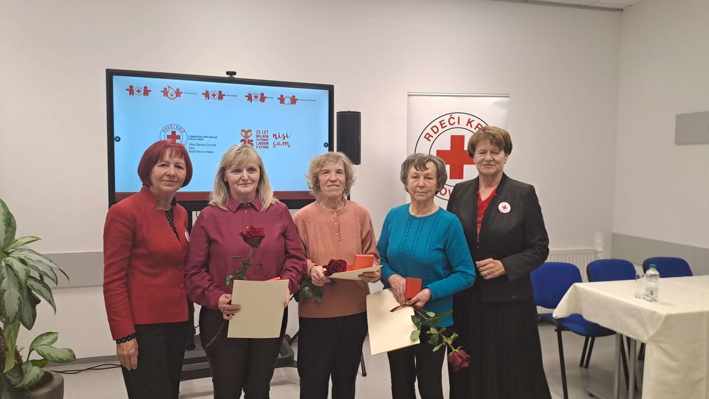 Vse to obsežno delo pa smo zaokrožili s podelitvijo bronastih in srebrnih znakov RKS, ki jih je prejelo trinajst prostovoljk. Podelili sta jih članica Glavnega odbora RKS, Vesna Dular in predsednica OZRKS Novo mesto Danica Novak Malnar. V kratkem kulturnem programu sta se predstavila Lara Šonc in Miha Recelj s petjem in spremljavo ob kitari.