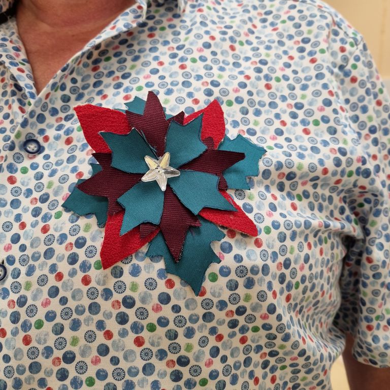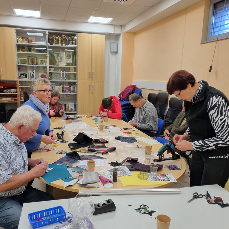V prostore novomeškega Rdečega križa počasi prihaja praznično vzdušje, kar se odraža tudi v aktualnih aktivnostih medegeneracijskega središča. Na petkovi ustvarjalni delavnici, 24. 11., smo se preizkusili v ustvarjanju prazničnih brošk iz tekstila. Pod mentorstvom gospe Ljubov Palamarchuk smo iz kravat ustvarjali božične zvezde raznovstnih vzorcev. Božične zvezde v dom prinašajo srečo in toplino, tokrat pa bodo polepšale oblačila naših udeležencev.