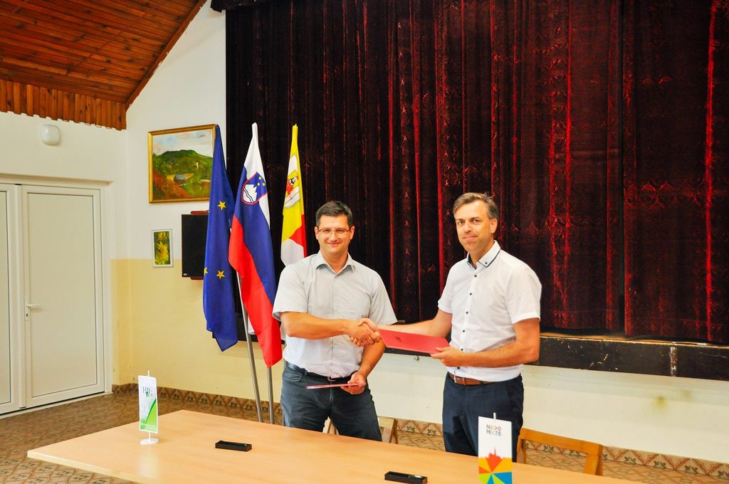 Včeraj sta župan Gregor Macedoni in direktor podjetja HPG Brežice Nikola Marković v Kulturnem domu Gabrje podpisala pogodbo za ureditev tamkajšnjega vaškega središča. V sklopu projekta bodo Gabrčani dobili novo avtobusno postajališče in obračališče na stičišču ulic Šumeči potok in Portoroške ceste.