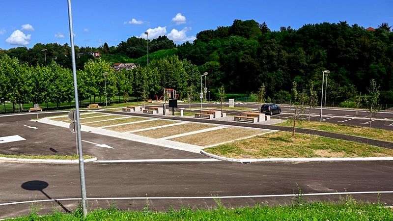 Nove površine za parkiranje obsegajo 42 parkirnih mest za osebna vozila, 6 parkirnih mest za avtodome, 4 parkirna mesta za invalide in 2 parkirni mesti s polnilnico za električna vozila.