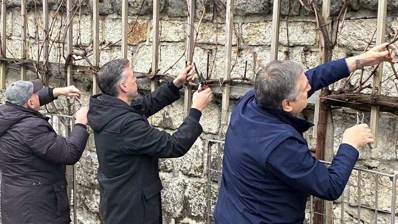 Župan Gregor Macedoni in mestni viničar oziroma skrbnik mestne trte Peter Korene iz Društva vinogradnikov Trška gora sta v družbi botrov trte Miše Andrijaniča in predsednika Zveze društev vinogradnikov Dolenjske Mirana Juraka na valentinovo tradicionalno obrezala potomko najstarejše žlahtne vinske trte na svetu, ki raste na Pugljevi ulici v Novem mestu.