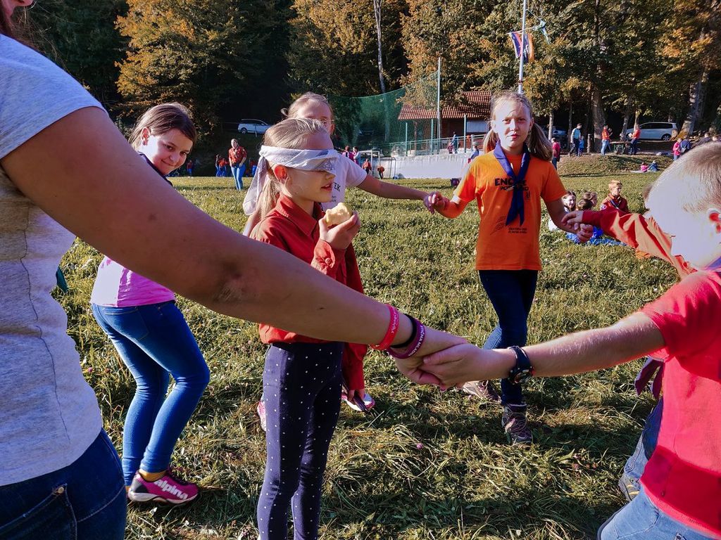 Po uvodnem kvadratu, kot pravijo formaciji, s katero se začne vsako srečanje, so začeli z aktivnostmi za vsako starostno skupino - štafete, spretnostne in miselne igre. Na druženju so se jim pridružili tudi straši, ki so poskrbeli za odlične prigrizke.