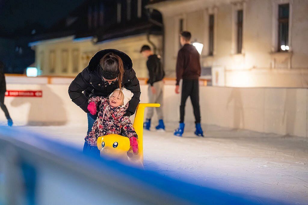 Svoje spretnosti na ledu lahko po ceni 3 EUR (vstopnica) oziroma 5 EUR (vstopnica + drsalke) preizkusite vsak dan med 15. in 21. uro.