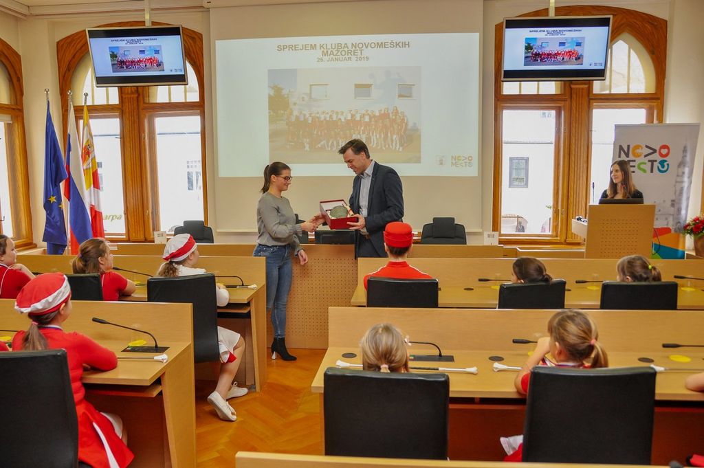 V petek, 25.1.2019, je župan na rotovžu sprejel novomeške mažorete in tako počastil njihove izjemne dosežke na državni in evropski ravni. Novomeške mažorete so se na evropskem pokalu mažoret, ki je lani potekal v Makedoniji, odrezale odlično in osvojile bronasto medaljo v kategoriji solo junior (Maja Klobučar) ter odlične uvrstitve dosegle tudi na državnem prvenstvu v Brežicah, kjer so skupno osvojile kar 26 medalj.