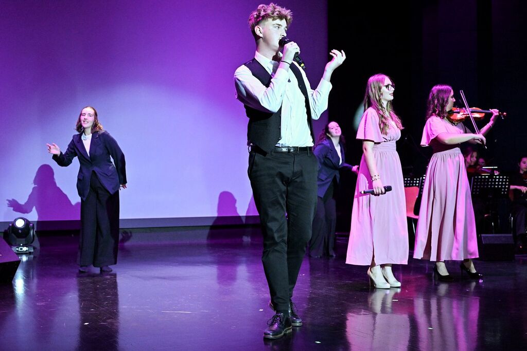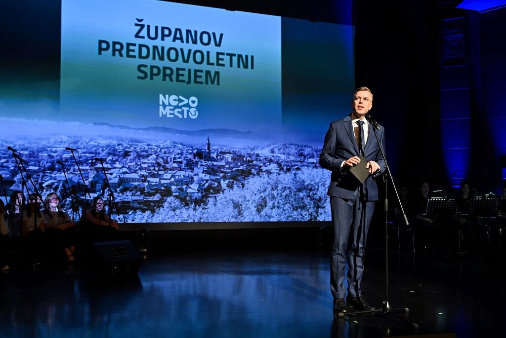 Župan Gregor Macedoni je tudi letos pripravil tradicionalni prednovoletni sprejem za poslovne partnerje, predstavnike lokalnih institucij in ostale posebne goste. Kulturni del večera je bil v znamenju mladosti, ustvarjalnosti in trajnosti na vseh področjih življenja. Pred polno dvorano Kulturnega centra Janeza Trdine so nastopile dijakinje in dijaki Gimnazije Novo mesto. 60-članska zasedba je pripravila pravi evrovizijski spektakel z interpretacijami glasbenih uspešnic preteklih let.